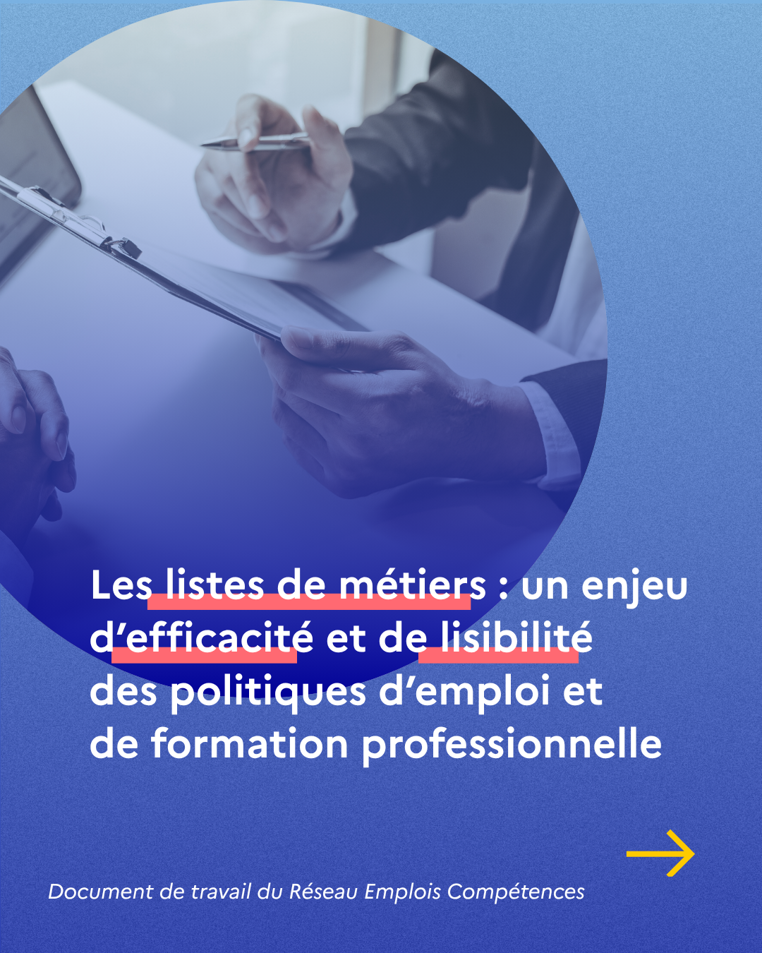REC | Les listes de métiers : un enjeu d’efficacité et de lisibilité des politiques d’emploi et de formation Les listes de métiers constituent une déclinaison concrète des orientations stratégiques de la politique de l’emploi et de la form... Emploi/chômage Compétences/métiers Travail Réseau Emplois Compétences 04 septembre 2025
